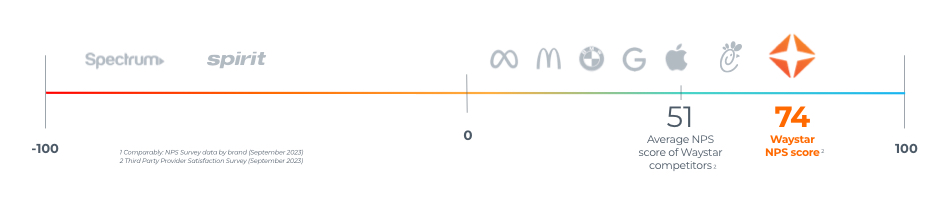 By deploying industry-leading technology at scale, we can increase revenue, decrease costs, and improve efficiency. It’s why Waystar’s net promoter score of 60+ ranks among the most prestigious brands in the world.1